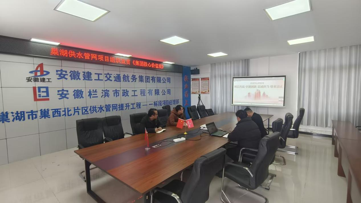 巢湖供水管道網(wǎng)項目召開專題會議,集中學(xué)習(xí)了集團發(fā)布的《關(guān)于開展安徽建工集團核心價值觀學(xué)習(xí)宣貫的通知》,鮮明解讀了“誠信共贏 卓越創(chuàng)新 忠誠擔當 敬業(yè)清正”核心要義。