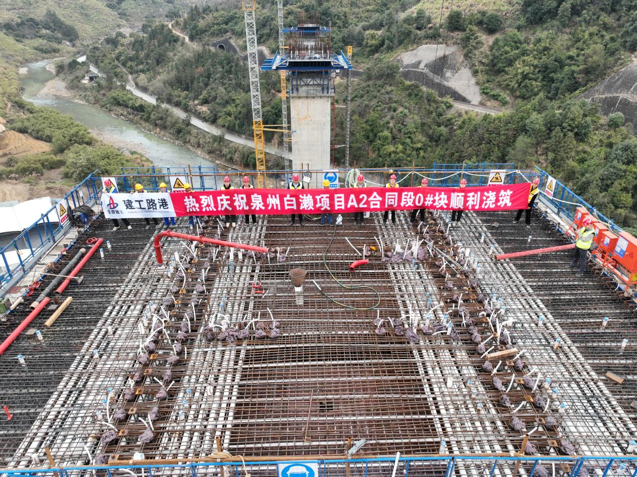 2月20日11時10分,歷經(jīng)23個小時的連續(xù)施工,隨著最后一方混凝土泵送入模,泉州白瀨項目劍溪大橋6#橋墩0#塊順利澆筑完成,這也是全線首個澆筑完成的0#塊,標(biāo)志著項目橋梁工程建設(shè)正式進(jìn)入上部結(jié)構(gòu)施工階段。