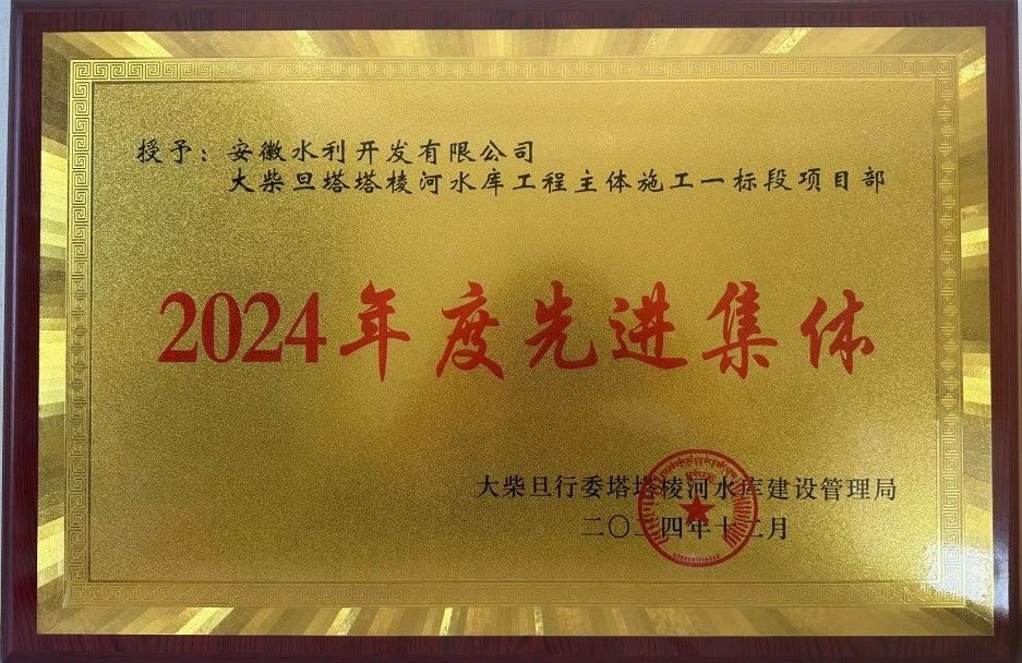 青海省大柴旦塔塔棱河水庫工程主體施工一標(biāo)段項(xiàng)目部憑借卓越的工程管理能力和顯著的建設(shè)成效,榮獲建設(shè)單位“2024年度先進(jìn)集體”稱號。