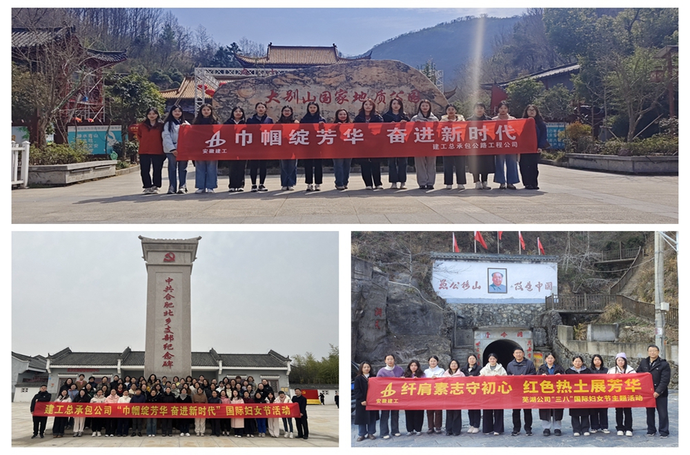 追尋紅色足跡,傳承革命精神。公司機(jī)關(guān)、公路工程公司等單位開展“巾幗綻芳華 奮進(jìn)新時(shí)代”“纖肩素志守初心 紅色熱土展芳華”等主題活動(dòng),組織女職工前往長(zhǎng)豐縣北鄉(xiāng)黨支部紀(jì)念館、大別山國(guó)家地質(zhì)公園、績(jī)溪龍川、大會(huì)山革命教育基地、馬郢史館等地開展紅色教育活動(dòng),重溫紅色記憶、感悟革命精神、接受黨性教育。