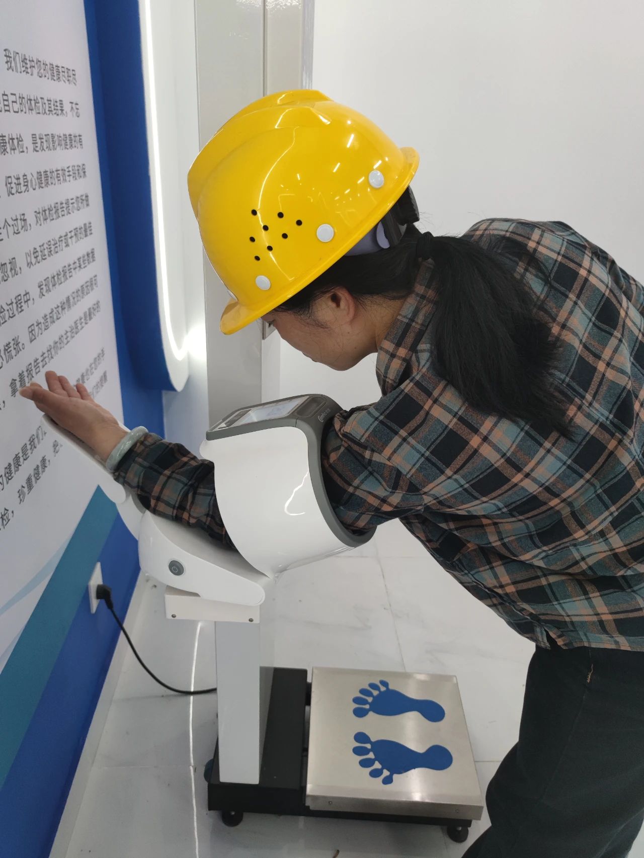 鳳凰山水庫(kù)樞紐工程項(xiàng)目部配備了健康體檢儀,可測(cè)量身高、體重、體脂肪率,還能檢測(cè)血壓等生理指標(biāo),幫助員工了解自身身體狀況,及時(shí)察覺(jué)潛在健康問(wèn)題。血壓、體脂隨時(shí)測(cè),健康檔案云端存!