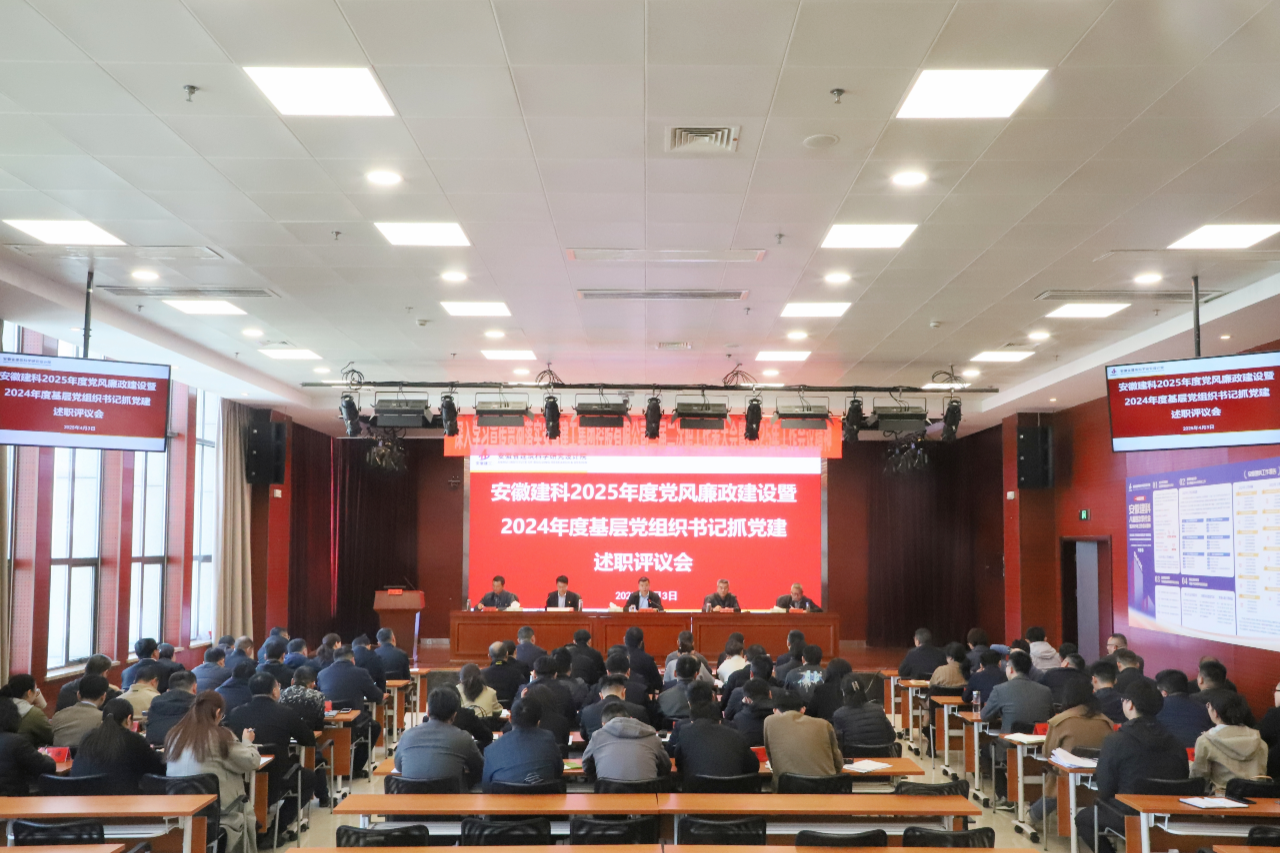 4月3日上午,安徽建科黨委召開2025年度黨風廉政建設暨2024年度基層黨組織書記抓黨建述職評議會。院黨委副書記、院長劉春雷出席會議并講話,院黨委委員、副院長、工會主席崔林釗主持會議。