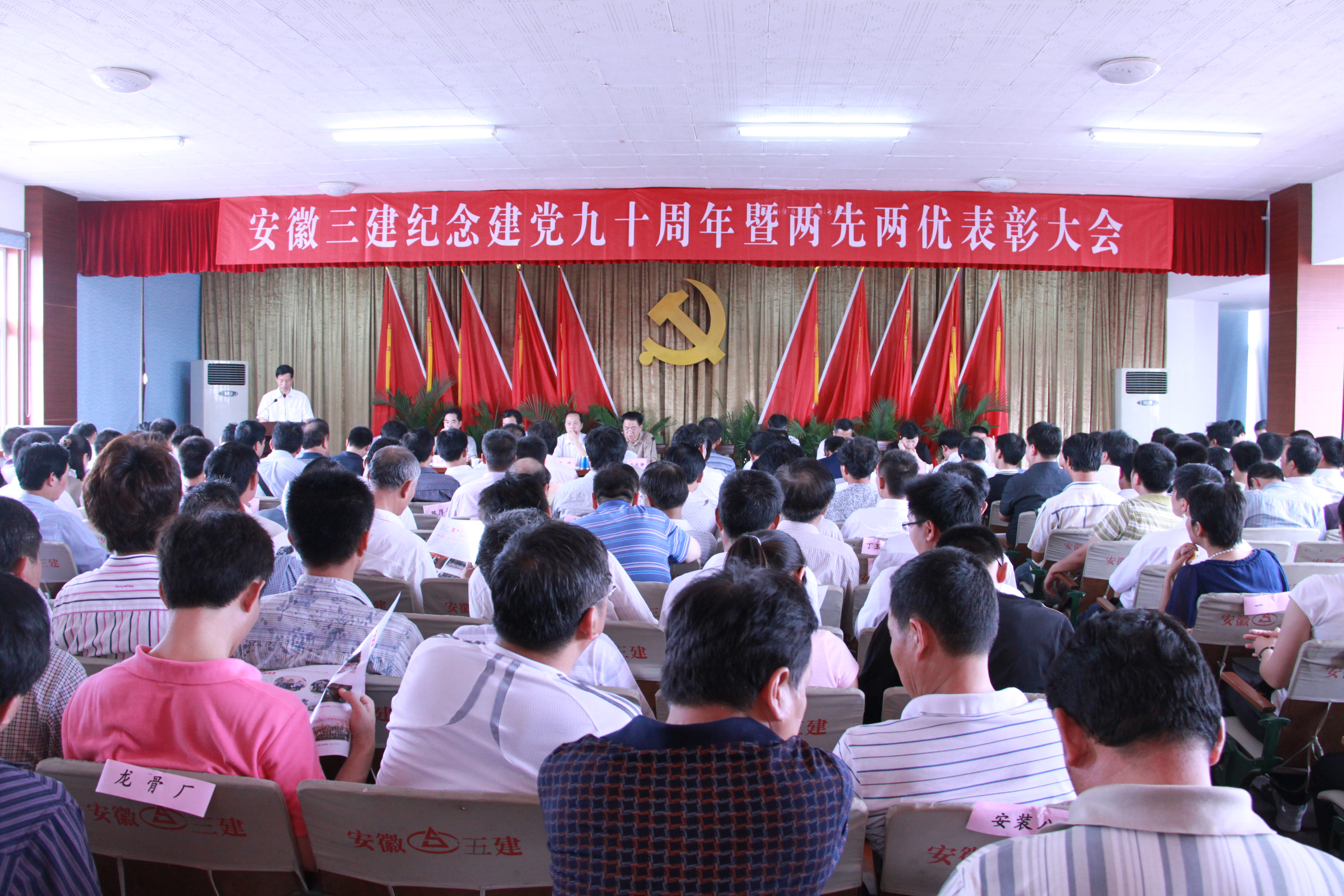 6月30日下午,安徽三建公司隆重召開紀(jì)念建黨九十周年暨“兩先兩優(yōu)”表彰大會,基層單位黨員代表等200余人出席大會。