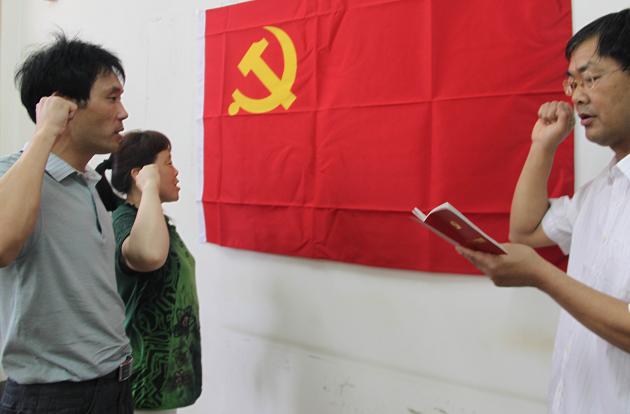 七一前夕,安徽三建公司華力勞務(wù)公司農(nóng)民工張永芝、魏福順被批準(zhǔn)加入黨組織,成為該公司首批農(nóng)民工黨員。在支部大會上,兩人舉起右手,對著鮮紅的黨旗進(jìn)行了莊嚴(yán)的宣誓。