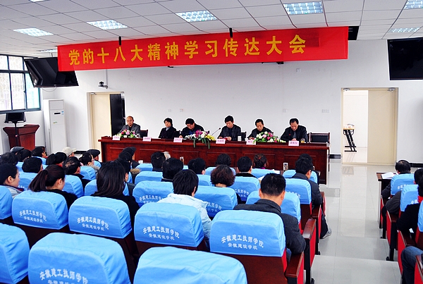 11月30日,安徽建工技師學(xué)院在新教學(xué)樓錄播室召開了學(xué)習(xí)貫徹黨的十八大精神大會(huì)。安徽建工集團(tuán)副總經(jīng)理、學(xué)院院長(zhǎng)王禮義和學(xué)院領(lǐng)導(dǎo)出席大會(huì)。部分離退休老同志應(yīng)邀出席,全體在職的黨員參加了大會(huì)。紀(jì)委書記、工會(huì)主席龔維加主持大會(huì)。