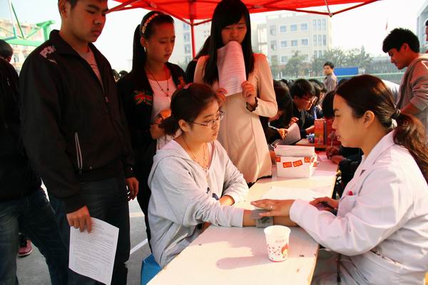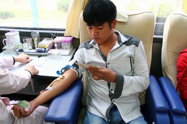 無償獻(xiàn)血,是社會文明程度提高的標(biāo)志之一,體現(xiàn)著人們相互幫助、無私奉獻(xiàn)的精神。近幾年,為了引導(dǎo)學(xué)生感恩國家,學(xué)會奉獻(xiàn),安徽建工技師學(xué)院團委多次號召學(xué)院廣大團員青年參加無償獻(xiàn)血活動。10月29日早8點,流動獻(xiàn)血車再次駛?cè)氚不战üぜ紟煂W(xué)院的校園,許多同學(xué)已經(jīng)早早的來到獻(xiàn)血地點提前等待,他們在志愿者和醫(yī)務(wù)人員的帶領(lǐng)下填表、體檢、化驗獻(xiàn)血,各個面帶笑容,順序井然?;顒右恢背掷m(xù)到下午4點,共有112名同學(xué)成功獻(xiàn)血,獻(xiàn)血27700ml。