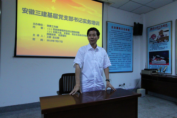 7月17號下午,安徽三建公司黨委工作部舉辦了一期黨支部書記實務(wù)培訓(xùn)班,全公司37個基層黨支部的負(fù)責(zé)人悉數(shù)到會參加培訓(xùn)。