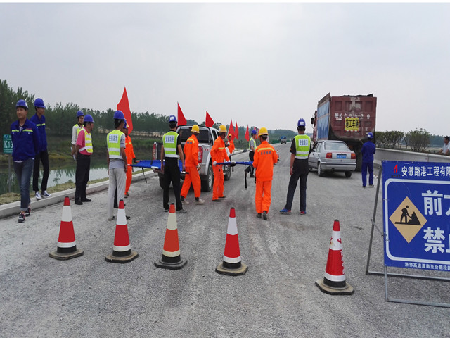 為提高全體施工人員的安全意識(shí),增強(qiáng)對(duì)應(yīng)急救援工作的組織能力和處理能力,更好地掌握事故發(fā)生時(shí)的救援措施,確??焖?、有序、高效地實(shí)施應(yīng)急救援工作,最大限度地減少因傷害造成的員工傷亡和財(cái)產(chǎn)損失,5月22日下午,安徽路港濟(jì)祁高速項(xiàng)目部組織開展了施工現(xiàn)場(chǎng)車輛傷害應(yīng)急安全演練。