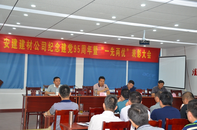 2016年6月28日上午,安建建材公司在安徽瑞特同大工業(yè)園一樓會議室召開紀念建黨95周年暨“一先兩優(yōu)”表彰大會、黨委中心組“兩學一做”學習(擴大)會議。參加人員有:公司領導、子(分)公司領導班子、機關部門副職以上人員、公司全體黨員以及受表彰的“一先兩優(yōu)”人員。會議由安建建材公司黨委副書記胡運春主持。