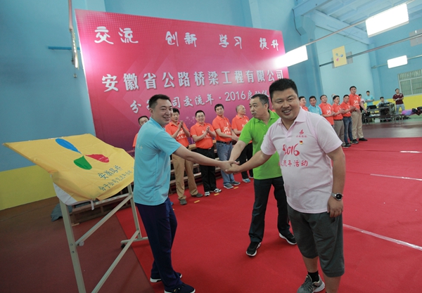 啟動儀式后,安徽路橋路面公司組織開展了趣味運(yùn)動會。參加活動人員分成8隊,共同完成了“抱團(tuán)高手”、“團(tuán)團(tuán)圓圓”和“團(tuán)結(jié)一致”三個團(tuán)隊活動,將“交流年”首次活動推向了高潮。